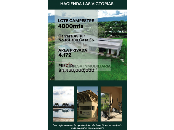 VENDO LOTE EN CONJUNTO DE CASAS CAMPESTRES EN UN SECTOR EXCLUSIVO DE LA CIUDAD DE IBAGUE, PROYECCION PARA CONSTRUIR SU MANCION O CASA SOÑADA, CON ALTOS ESTANDARES DE SEGURIDAD Y PRIVACIDAD, ESTE LOTE DE 4172 M2 CON SERVICIOS INCLUIDOS, RODEADOS DE NATURALEZ, PAZ, TRANQUILIDAD, EL CONJUNTO CUENTA CON ZONAS SOCIALES ENTRE ELLAS VARIAS PISCINAS, CANCHA DE TENIS , CABALLERIZAS, SENDEROS ECOLOGICOS Y GIMNACIO, ESTE LOTE ES UNA OPORTUNIDAD DE INVERSION.